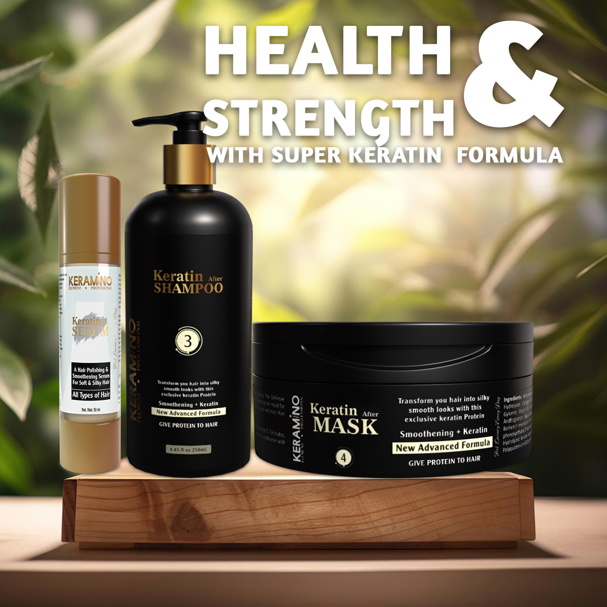 KERAMINO ELEMENT PROFESSIONAL Keratin After Care Shampoo, Mask & Serum | Post-Keratin Hair Care Kit | For Smooth, Shiny, Frizz-Free & Healthy Hair